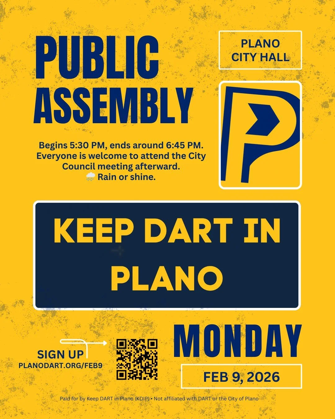 City Council placed a vote on the May ballot to consider removing Plano from the DART system after more than 40 years of regional partnership. If Plano leaves, it impacts rail, buses, GoLink, paratransit and the future of mobility in North Texas.